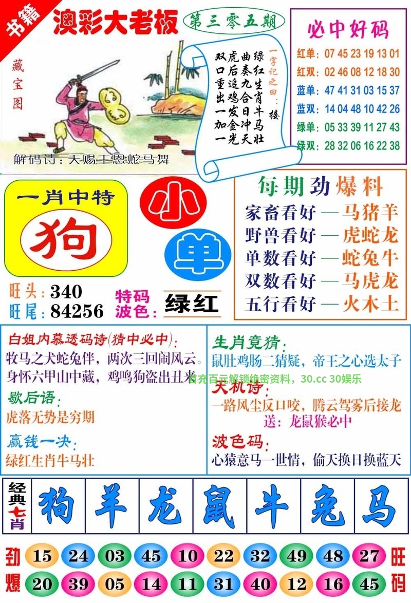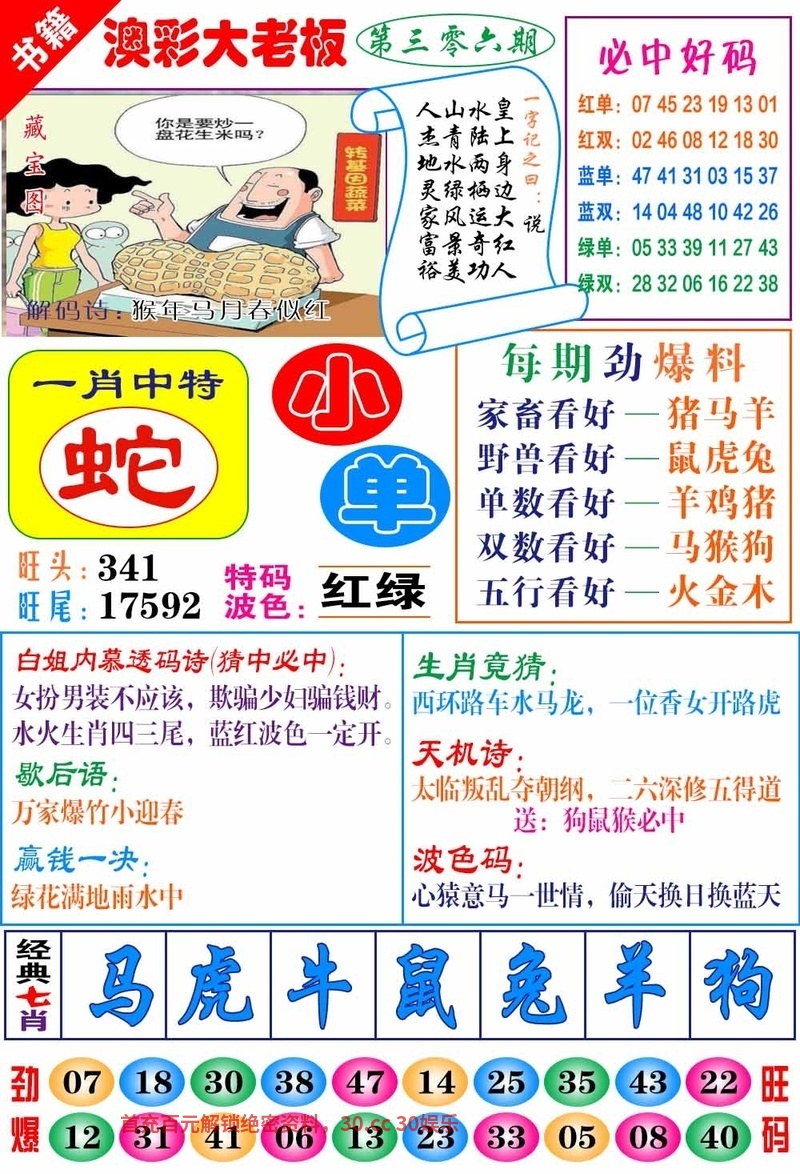 | 307期:七肖【鼠猪牛狗猴龙蛇】开:狗20准 |